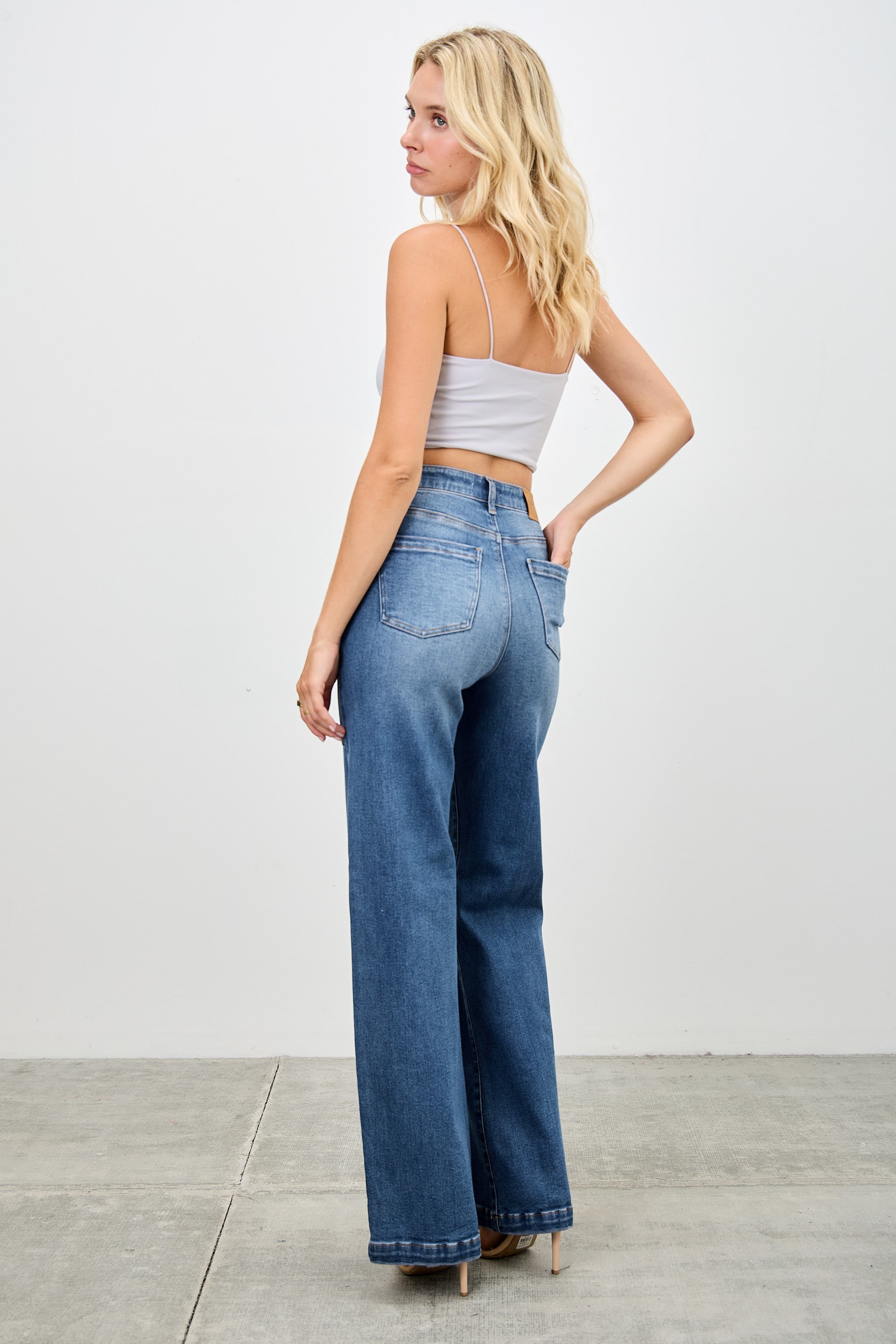 P8203MD, HIGH RISE WIDE BOOCUT WITH PATCHED POCKET