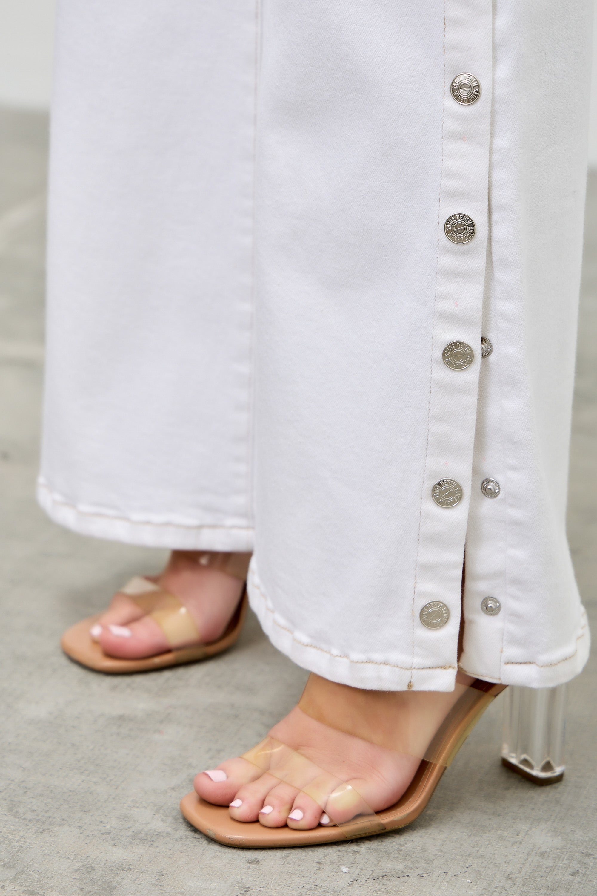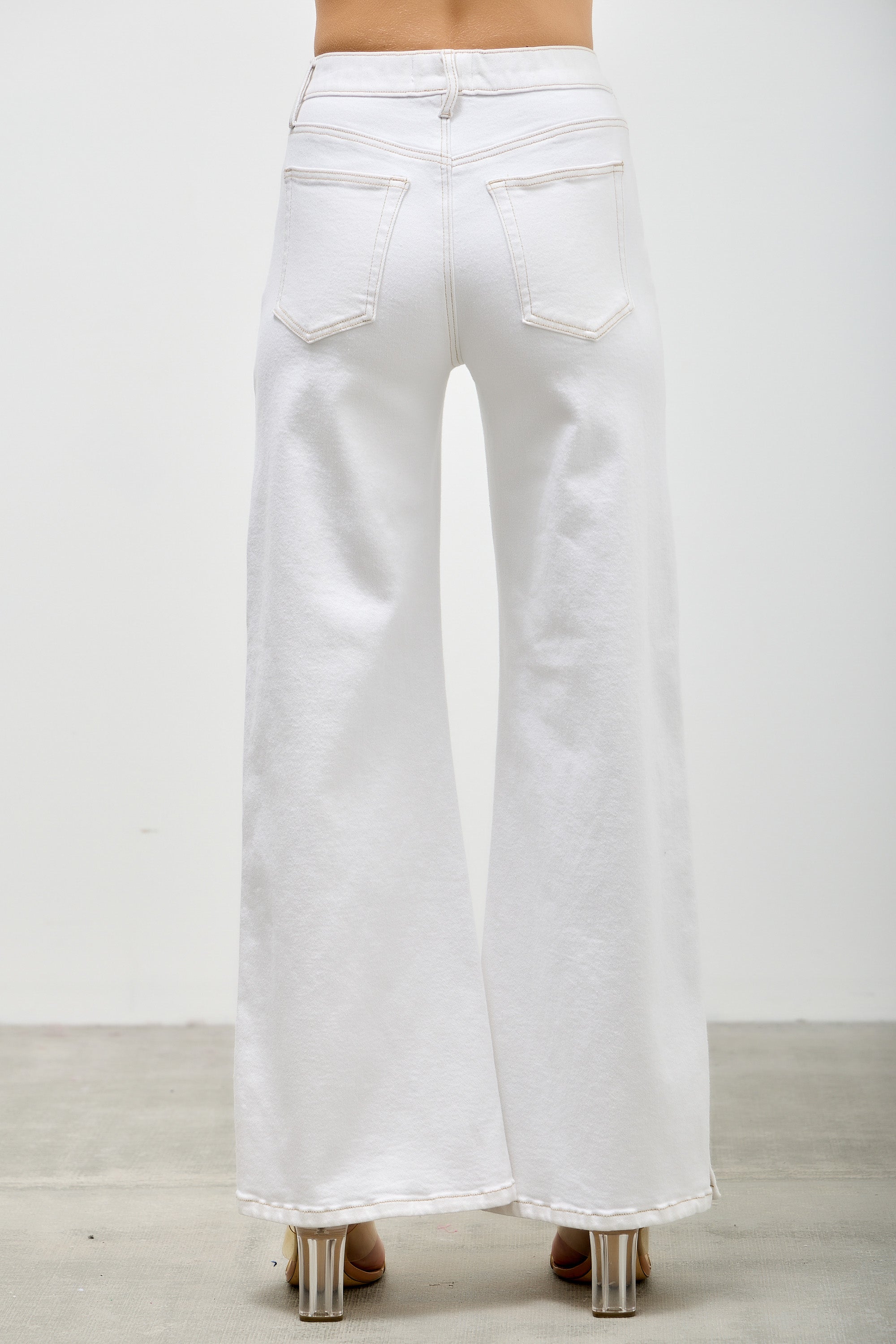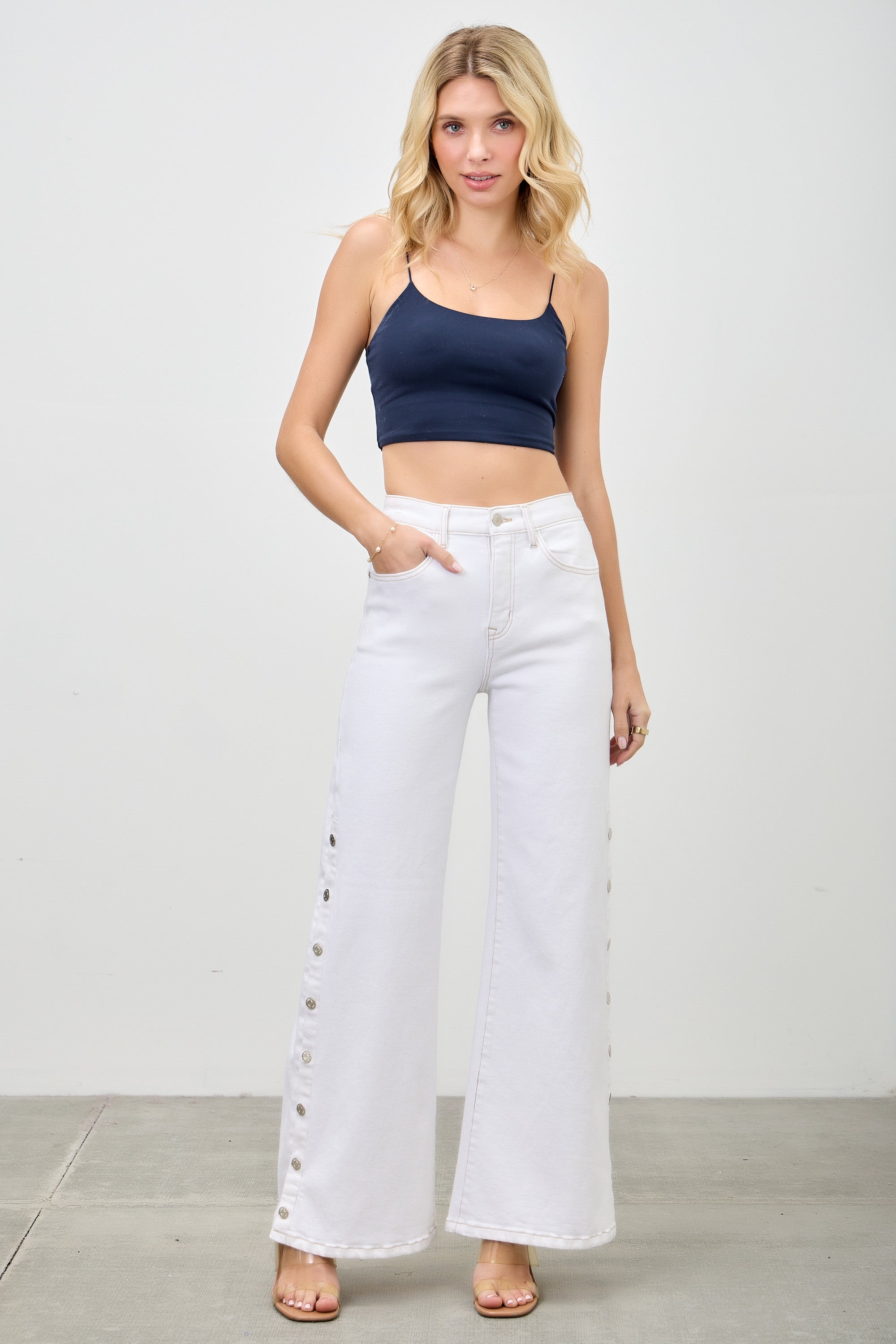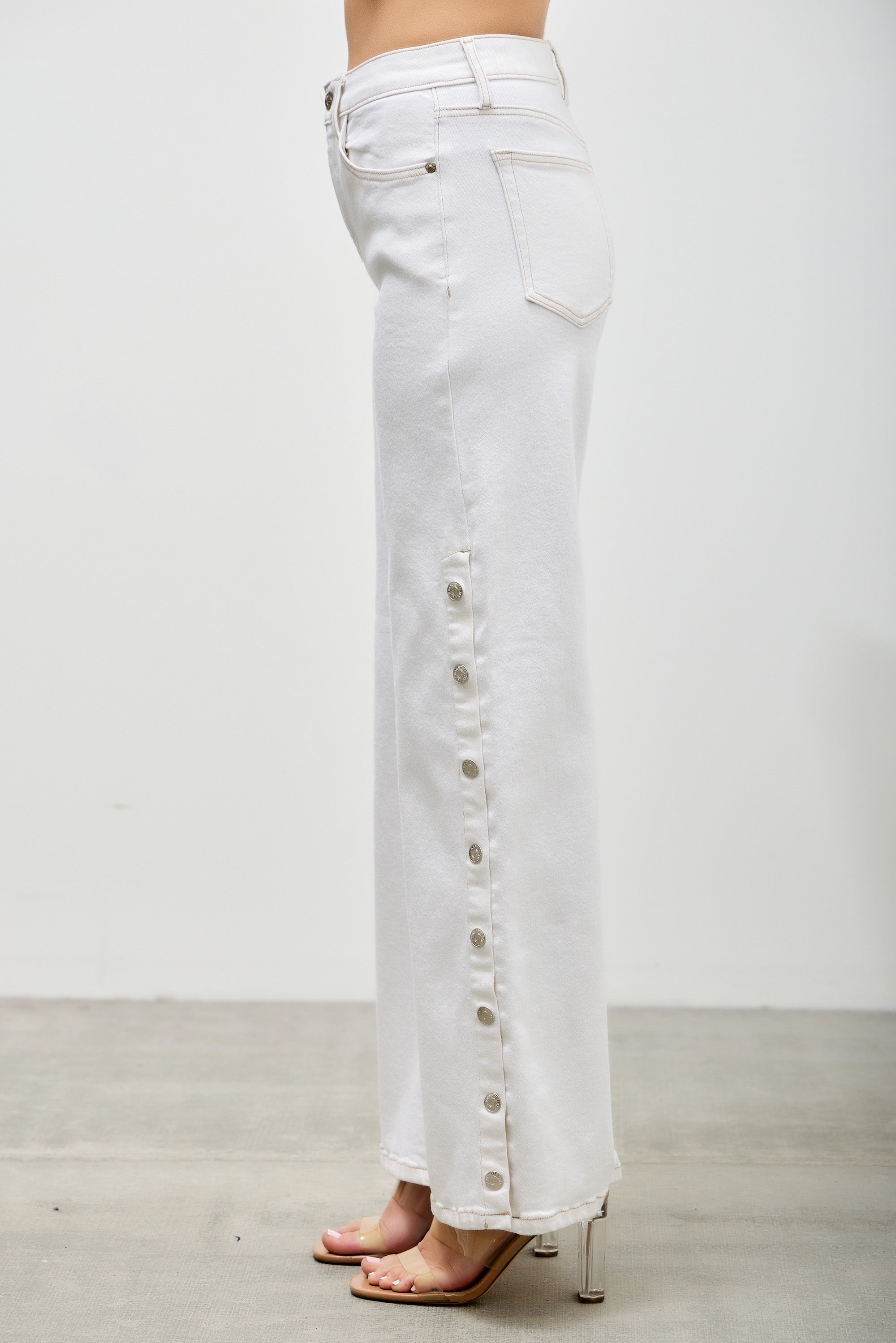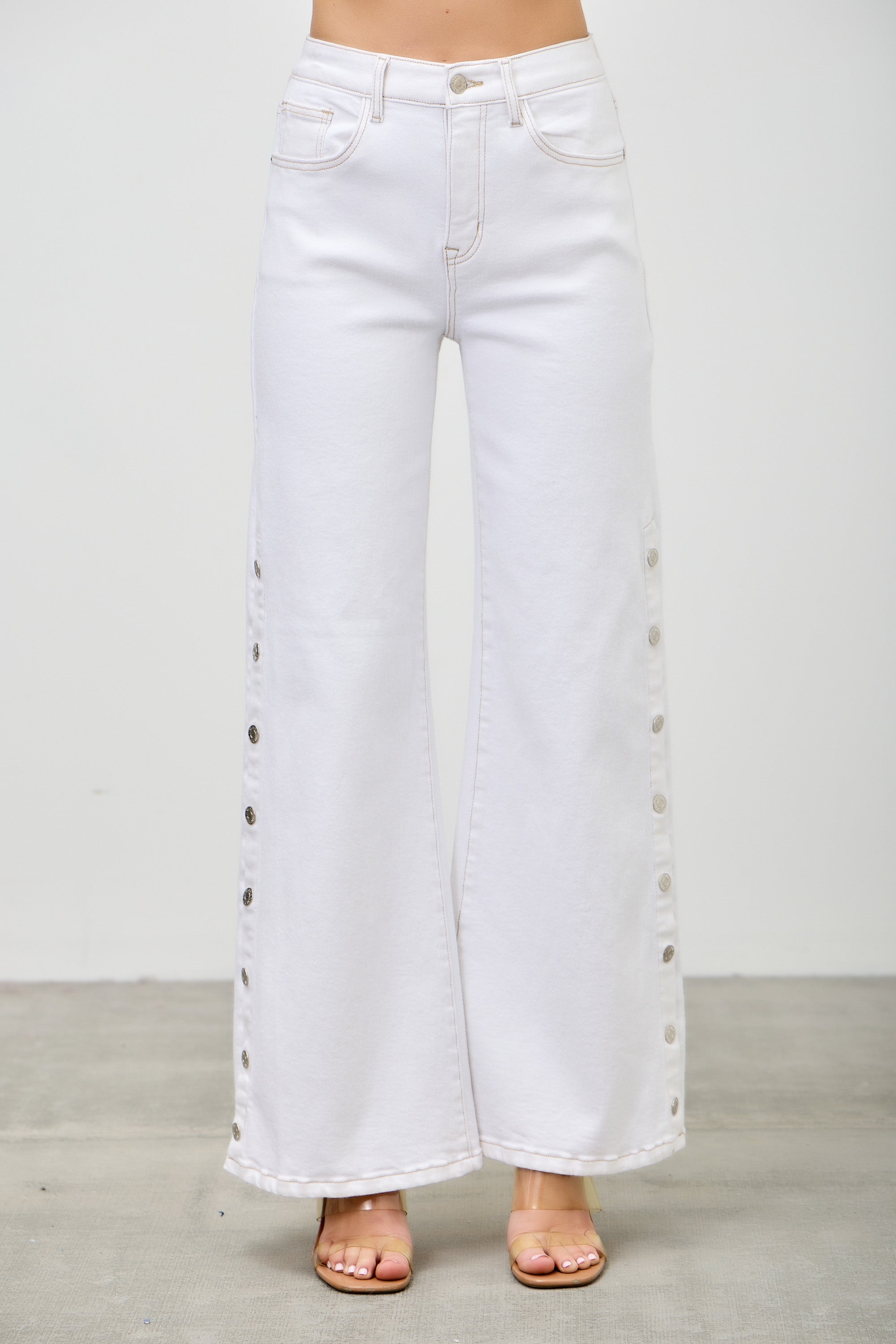 P82858WH, PLUS HIGH RISE WIDE LEG WITH SNAP BUTTONS
