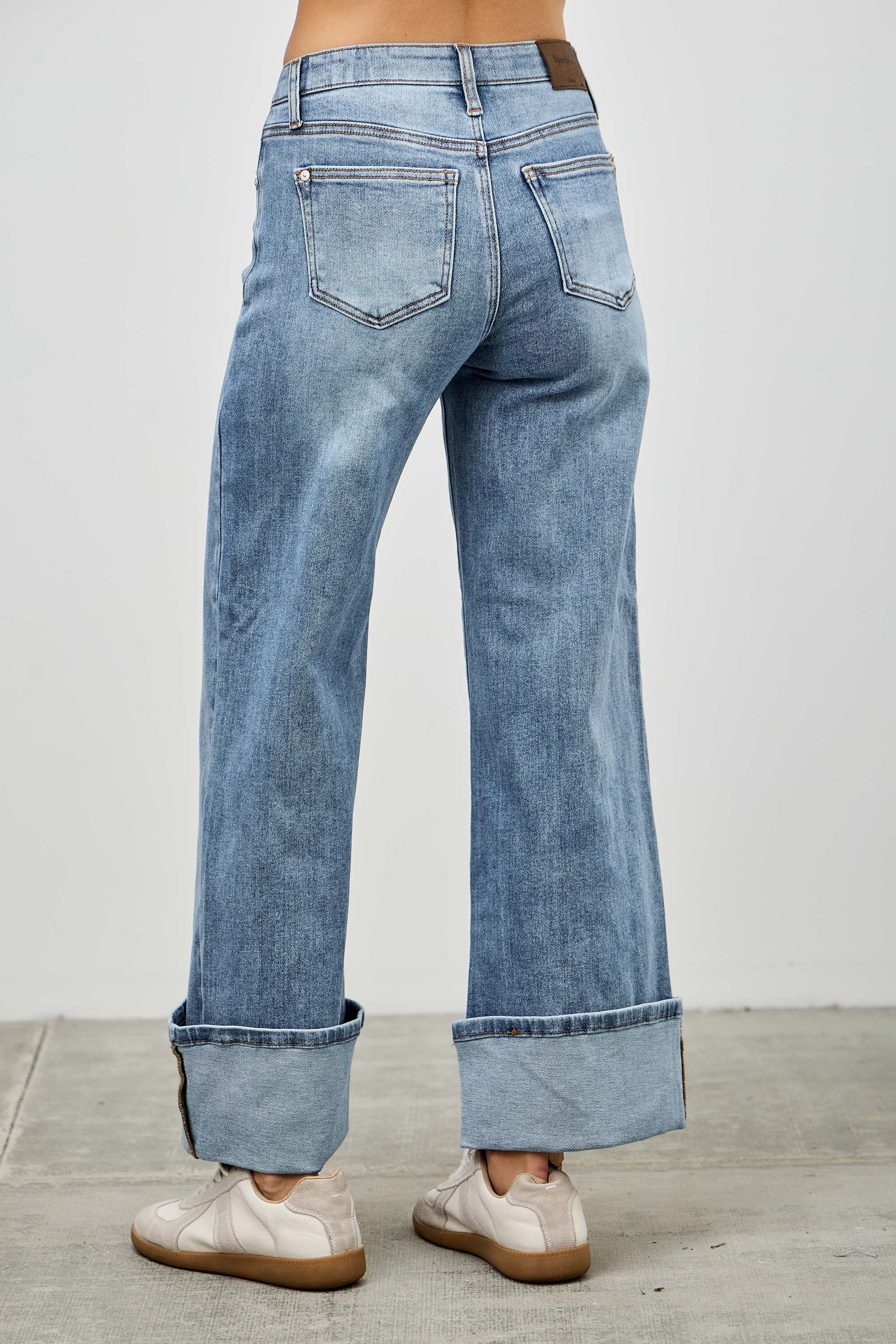 P7561D, MID RISE CUFFED JEANS WITH STRETCH